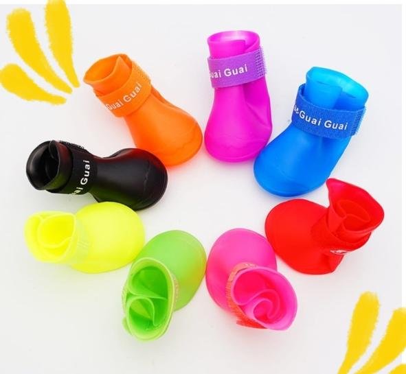 Guai Guai shoes for dogs are 100% waterproof, flexible silicone rain boots designed to keep paws clean and dry during rainy or snowy walks. These shoes typically feature an anti-slip sole for traction on slippery surfaces and an adjustable hook-and-loop strap to ensure they stay secure.