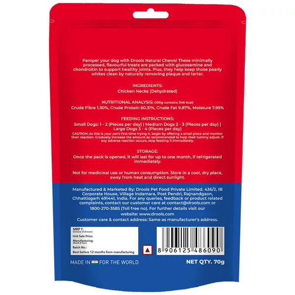 Pamper your dog with Drools Natural Chews! These minimally processed, flavourful treats are packed with glucosamine and chondroitin to support healthy joints. Plus, they help keep those pearly whites clean by naturally removing plaque and tartar.