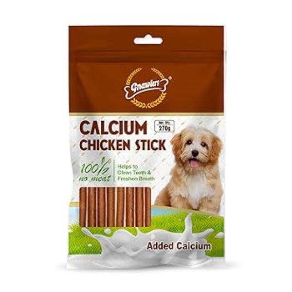Gnawlers Calcium Stick Dog Treat is made of high quality and finest ingredients which makes this a premium quality chew treat with a delicious real chicken and milk flavour. Its twisted shape improves the ability to clean teeth while chewing and also freshening dog’s breath. Your lovable pet will love these Chew Stick because of its best taste. This is a healthy snack, Use as a supplement to feed that meets your dog’s daily requirements. Not for human consumption. Remember to feed the dog under your guidance and guarantee that the dog should always have access to plenty of fresh water. It also presents a healthy way in which the puppy may engage its urge to chew. Easy on the digestive system, this helps to provide general well being to the puppy through its nutritional composition. This is Ideal Dog Treat For All Age of Dogs & All Breeds.