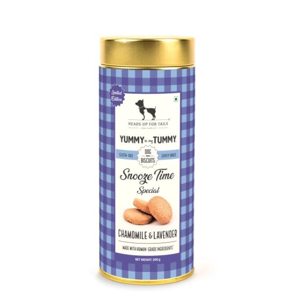 Looking cute and playing hard all day is serious business. So, your dog deserves a treat to end the day on a calming, relaxed note! With Yummy In My Tummy Snooze Time Special – Chamomile & Lavender Biscuits, your dog gets to munch on a yummy, healthy treat that can help calm them, so they sleep deep and have sweet dreams.