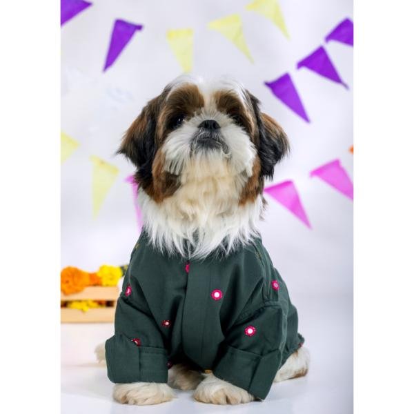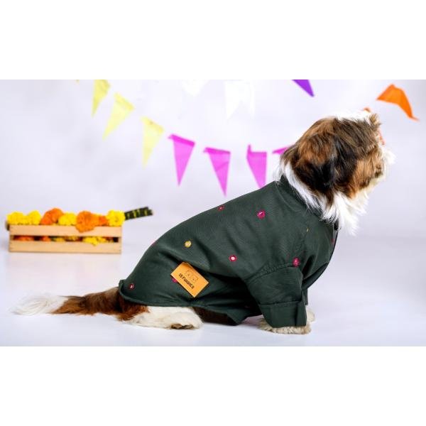 HUNTER GREEN MIRRORWORK KURTA FOR DOGS quantity