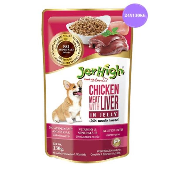 JerHigh Chicken with Liver in Jelly Dog Wet Food is a delicious and nutritious meal option for your furry friend, combining tender chicken and rich liver in a flavorful jelly. This recipe is crafted to provide your dog with a healthy, balanced diet while offering a taste that dogs love.