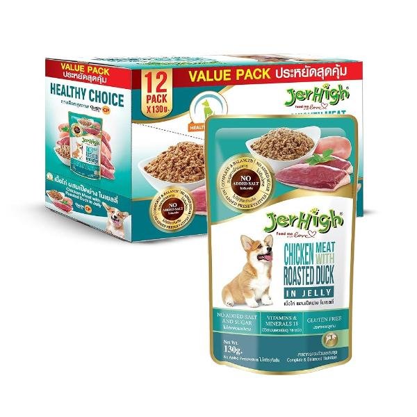 JerHigh Chicken with Roasted Duck in Jelly Wet Dog Food is a delectable and nutritious meal designed to satisfy your dog’s taste buds with a delicious combination of tender chicken and flavorful roasted duck. The jelly texture makes it both tasty and easy to eat, while also providing added moisture to keep your dog hydrated.