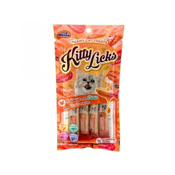 Rena’s Kitty Licks Tuna with Salmon is a delectable treat for every adult cat. It contains tuna and is high in fiber, which helps the digestive system. Taurines, which are found in Rena’s Kitty Licks Tuna with Salmon, help with vision. It contains Omega 6, Zinc, and DL-Methionine, which help to improve the skin and coat. Made in Thailand. Rich Creamy, Lickable Treat. Tuna with Salmon Flavor. No artificial colors used.