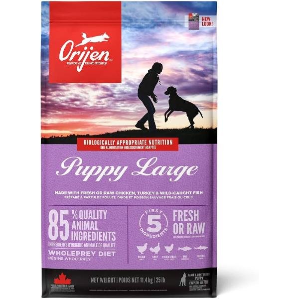 - Biologically Appropriate: With rich nourishing protein and limited low-glycemic carbohydrates, Orijen Large Breed Puppy Dog Food nourishes all large sized puppy dogs, according to their evolutionary and biological needs just as they would in the wild. Because wolves don’t eat highly processed cooked food, do they?