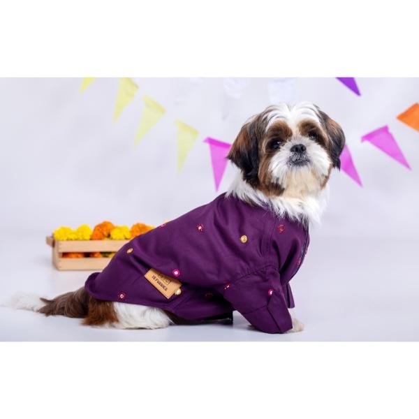 PURPLE WINE MIRROR WORK KURTA FOR DOGS quantity