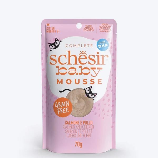 A recipe specifically for kittens, full of salmon and chicken protein, blended into a soft and velvety mousse.