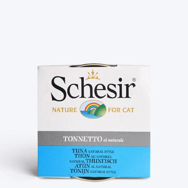 Schesir recipe based on real delicious tuna fillets, prepared in their cooking water, for cats who love a natural taste and texture.