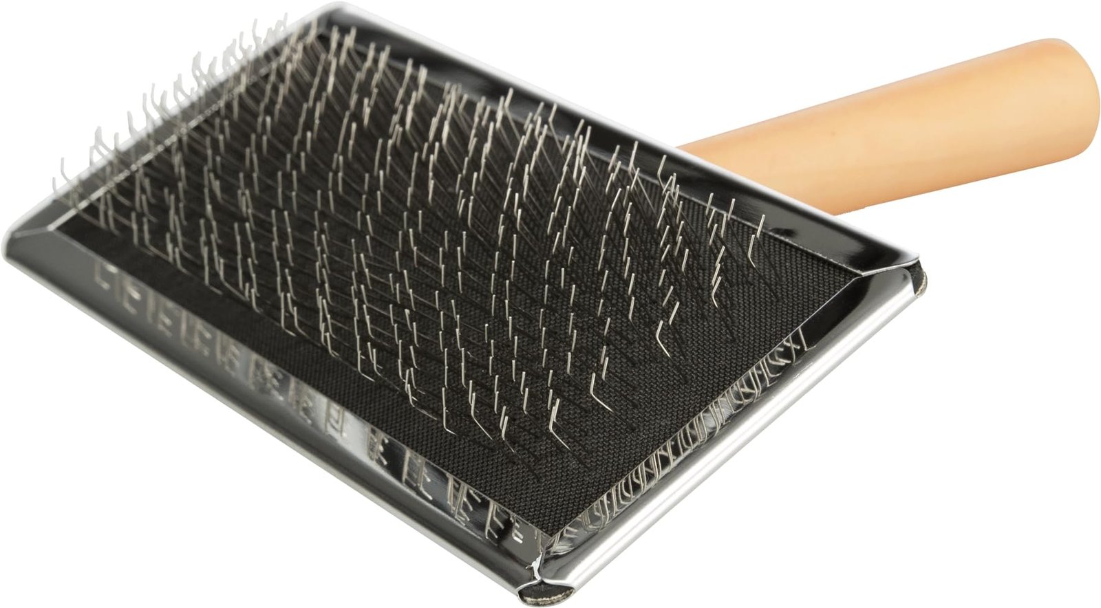 • Bristles: The brush features extra-soft metal wire bristles on a chrome base, designed to provide gentle yet effective grooming without irritating the pet’s skin.