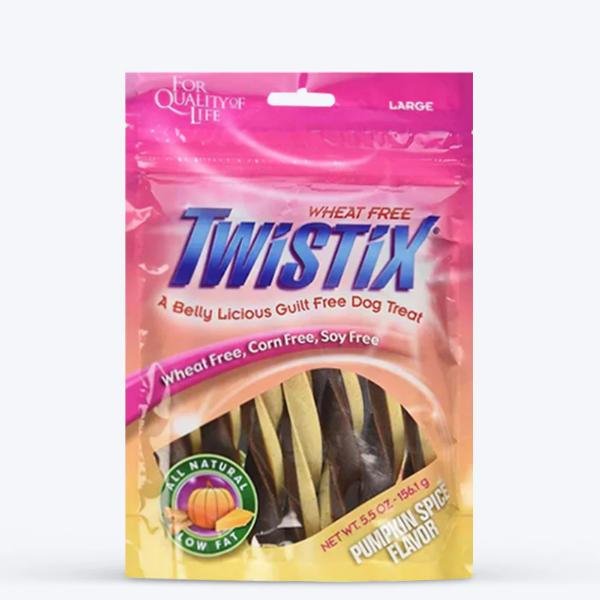 Twistix Pumpkin dog treats are the ideal chews for dogs who are allergic to wheat, corn or soy. Made from a delicious combination of pumpkin, star anise, cinnamon, fennel, peppermint and ginger, your pooch will relish the taste of this unique treat. These treats also help to maintain oral hygiene by reducing the build up of plaque and tartar.