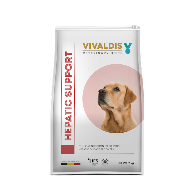 Vivaldis Veterinay Hepatic Support Diet is a premium clinical nutrition solution tailored for dogs suffering from liver disorders. This scientifically formulated diet combines high-quality protein, lipotropic agents, low copper levels, and high energy content to support liver function and overall health. Its advanced formulation provides antioxidant, anti-inflammatory, and antifibrotic benefits to slow disease progression and enhance the dog’s quality of life.