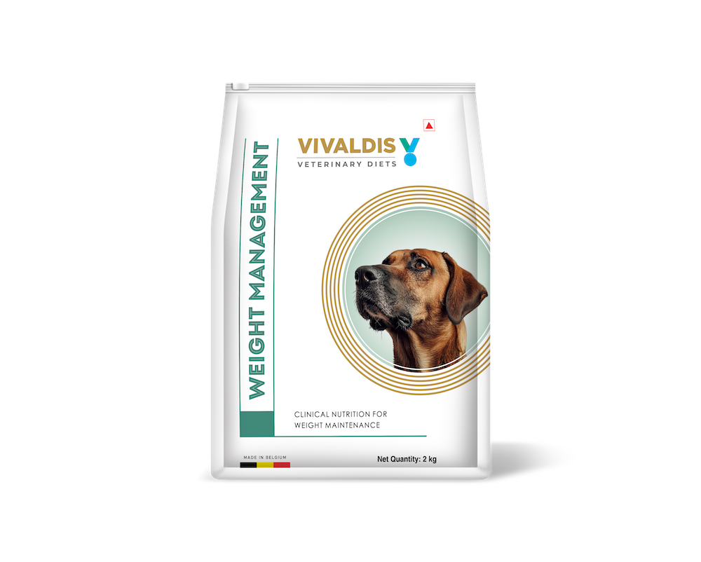 Vivaldis Weight Management Diet is a clinically formulated nutrition plan tailored for dogs requiring effective weight maintenance. It combines high protein, low carbohydrates, and low fat with essential amino acids, vitamins, and minerals to ensure a balanced diet. This diet improves satiety, enhances fat metabolism, and provides lean protein to maintain muscle mass while addressing issues like leptin resistance to support a healthy weight.